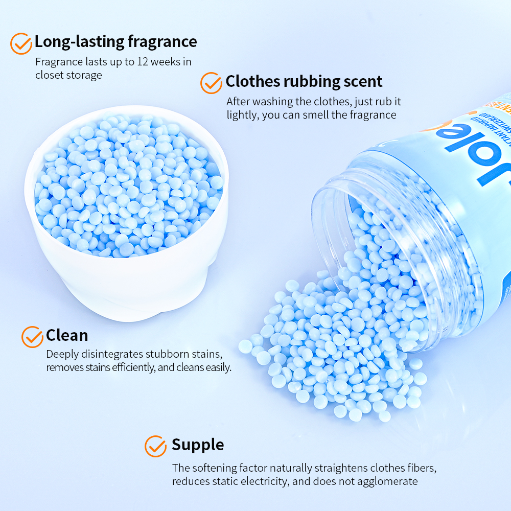 Parameter information: Brand: E-JOY/OEM Shape: Granular Specifications: 200g/220g/OEM Fragrance Types: Lavender/Ocean/Cherry Blossom/Fricia/OEM Color: Customizable according to requirements Functions: Aromatic/Antibacterial/Anti-mite/OEM Ingredients: Factory formula/OEM Packaging specifications: Customized according to requirements Usage: Enhances fragrance and softens clothing Country of origin: Guangdong, China |